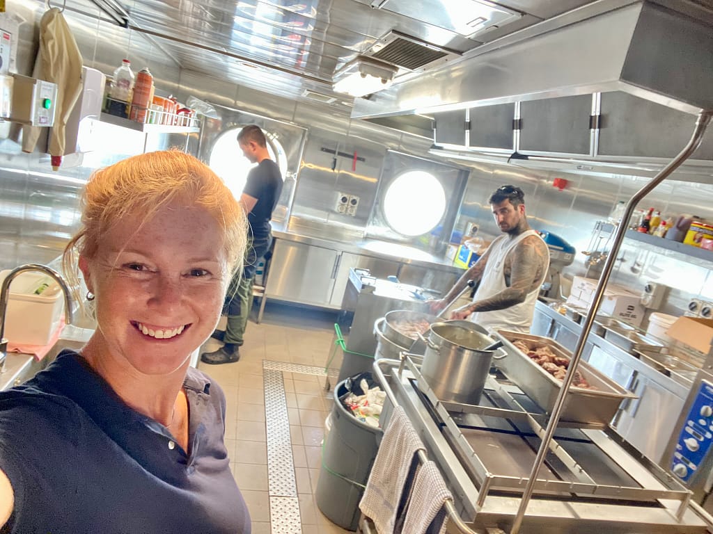 I’m now cooking alongside Damo in the galley. It’s probably fairly comical to watch. I have no idea what I’m doing and, though Damo loves cooking, the serving/timing part is stressing him out. I feel for him! He’s doing a great job despite the stress and the guys are really enjoying the meals.